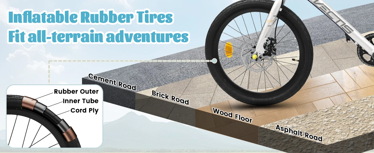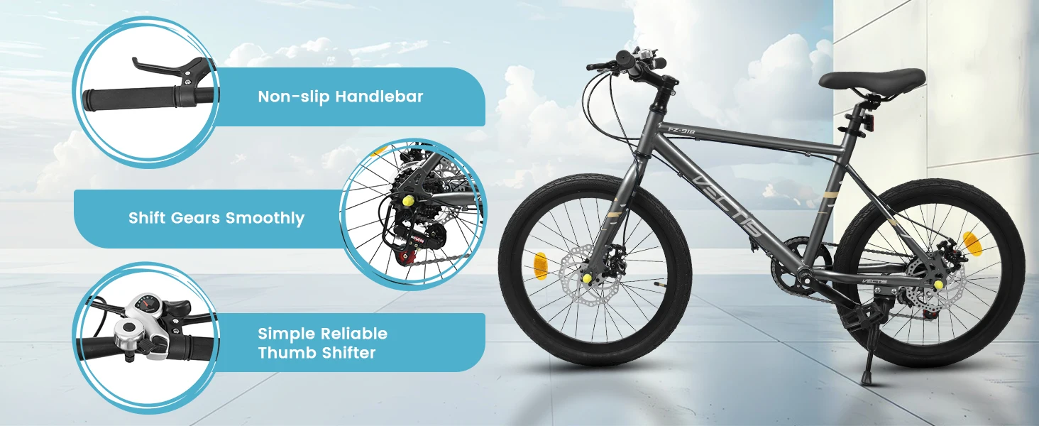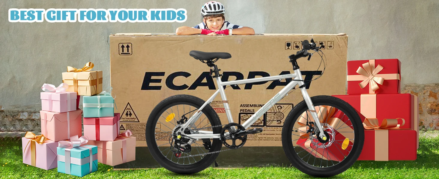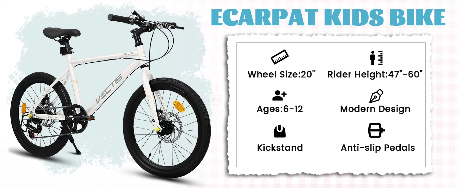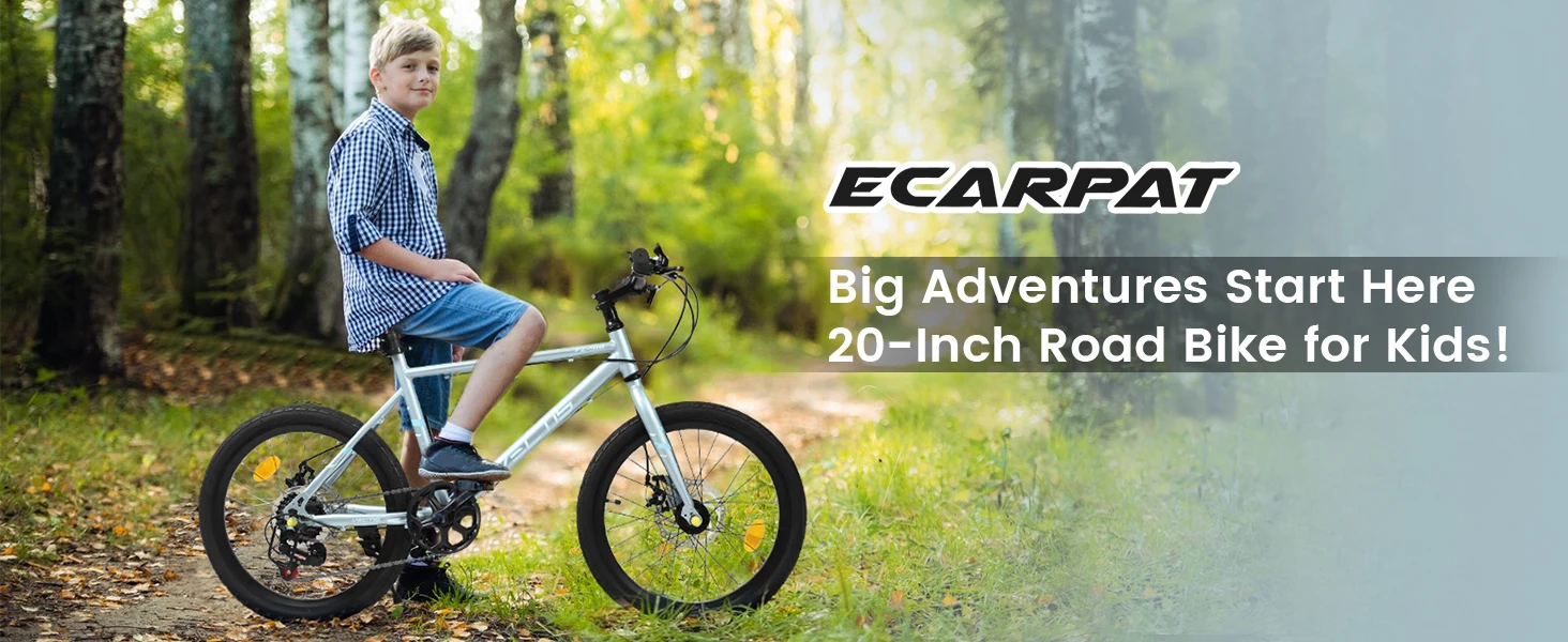 [Durable Carbon Steel Frame for Long-Lasting Performance] Built with a sturdy carbon steel frame, this 20-inch kids’ road bike ensures exceptional durability and stability for energetic riders aged 6-12. The 12-inch frame dimensions and 150lb load capacity provide a secure, comfortable fit, while the lightweight design makes it easy for kid cyclists to handle and control.[7-Speed Gear System for Versatile Riding] Equipped with a 7-speed twist grip shifter, this bike allows kids to effortlessly adjust gears for uphill climbs, flat roads, or speedy descents. The smooth gear transitions enhance the riding experience, helping kid riders develop confidence and cycling skills while exploring different terrains.[Dual Disc Brakes for Superior Safety & Control] Safety is prioritized with front and rear disc brakes, delivering reliable stopping power in all weather conditions. Unlike traditional rim brakes, disc brakes offer consistent performance on wet or uneven surfaces, giving parents peace of mind and kids the confidence to ride faster and farther.[Road-Ready Design for Speed & Comfort] The 20×2.125 clincher tires provide excellent traction and stability, while the flat handlebars ensure a comfortable, upright riding position for extended adventures. The bike’s sleek design reduces rolling resistance, making it perfect for both casual rides and more spirited cycling.[Complete Package for Easy Assembly & Safety] Everything needed for a quick setup is included: toolkits, assembly instructions, and reflectors for enhanced visibility. The bike also features a kickstand for hassle-free parking, making it a practical and thoughtful birthday gift for active kids ready to hit the road!